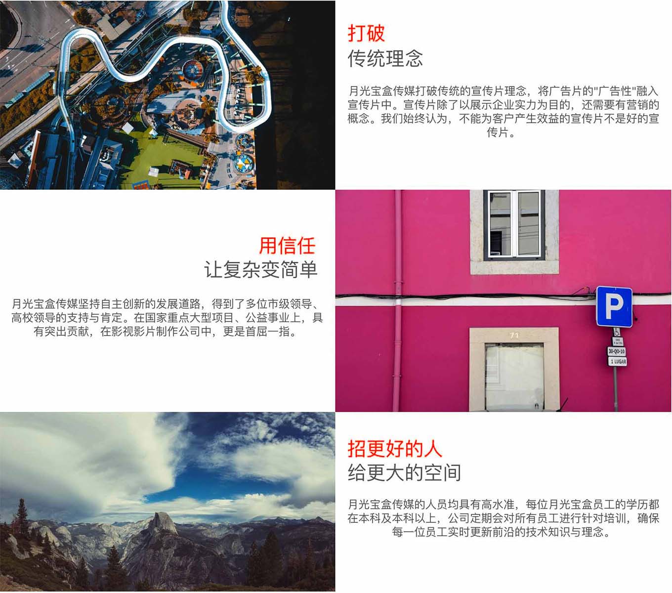 山东月光宝盒传媒汇聚了经验丰富的创作精英,兼具专业理论和实战经验,多年来积累的丰富服务经验,以最短的时间了解客户的诉求